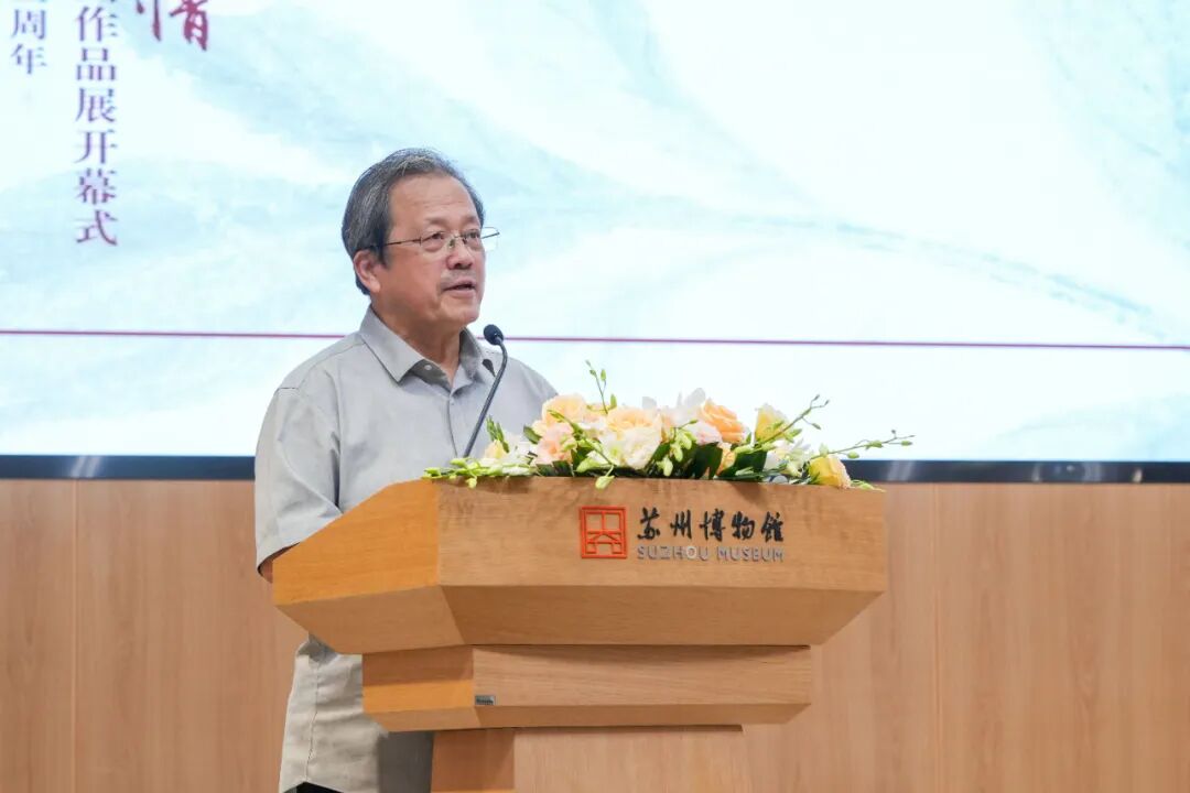 冯远、方宁分别在开幕式上致辞。中央文史研究馆馆员程大利、江苏省文联副主任、美术家协会副主席徐惠泉则代表中央文史研究馆馆员和与会专家发言。中央文史研究馆馆员郭怡孮、董正贺向苏州市博物馆分别捐赠了书画作品《朝晖》和《志当存高远》。