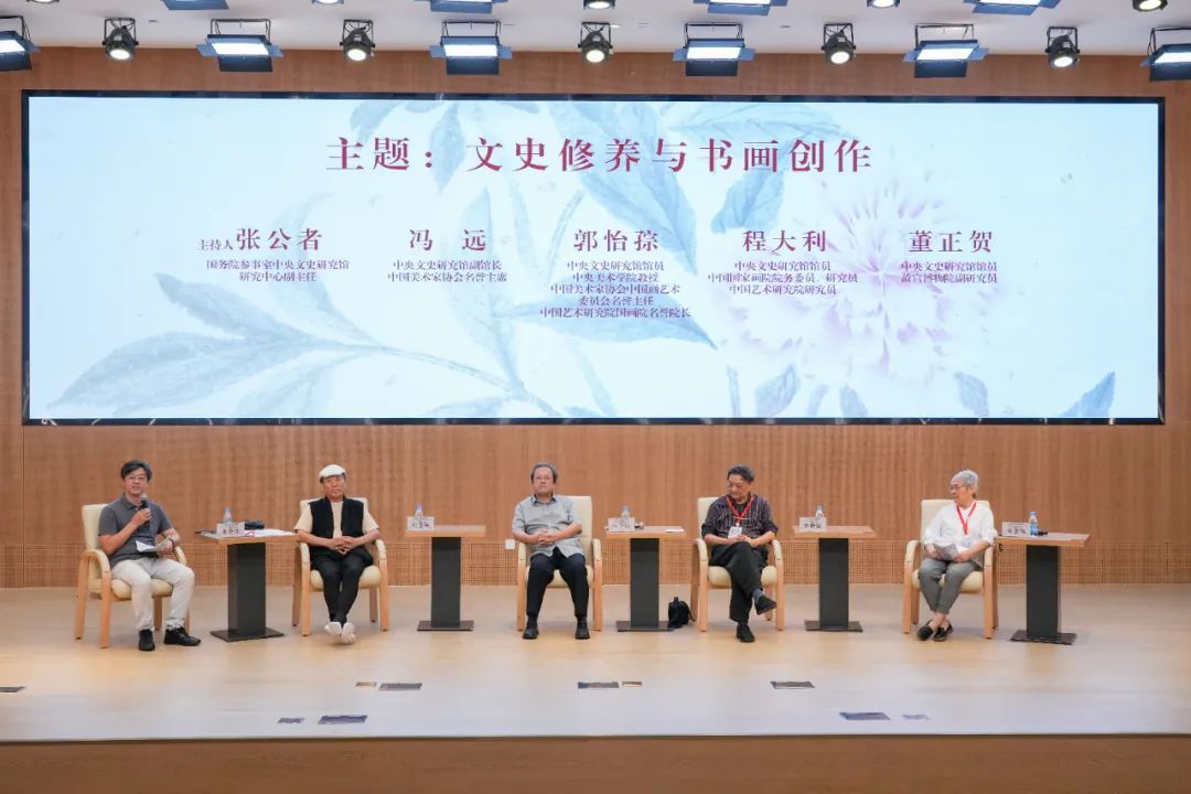 展览同日还举行了展览专题学术对话活动。对话由国务院参事室中央文史研究馆研究中心副主任张公者担任主持。参展艺术家冯远、郭怡孮、程大利、董正贺,参会专家徐惠泉、孙稼阜、李金豹、蔡树农、冯错等以“文史修养与书画创作”和“中国书画的当代价值”为主题进行对话交流,对新时代历史方位下中国书画艺术的创作和研究,功能定位和发展方向等方面提出了不少有价值的意见建议。