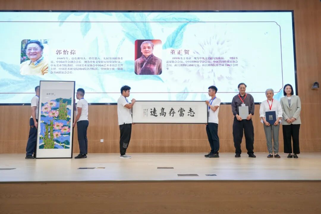 冯远、方宁分别在开幕式上致辞。中央文史研究馆馆员程大利、江苏省文联副主任、美术家协会副主席徐惠泉则代表中央文史研究馆馆员和与会专家发言。中央文史研究馆馆员郭怡孮、董正贺向苏州市博物馆分别捐赠了书画作品《朝晖》和《志当存高远》。